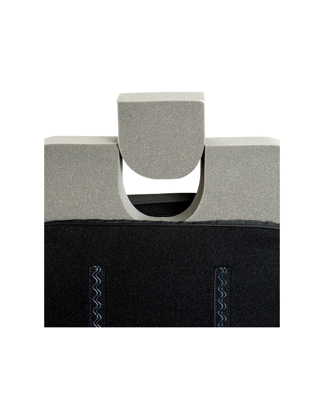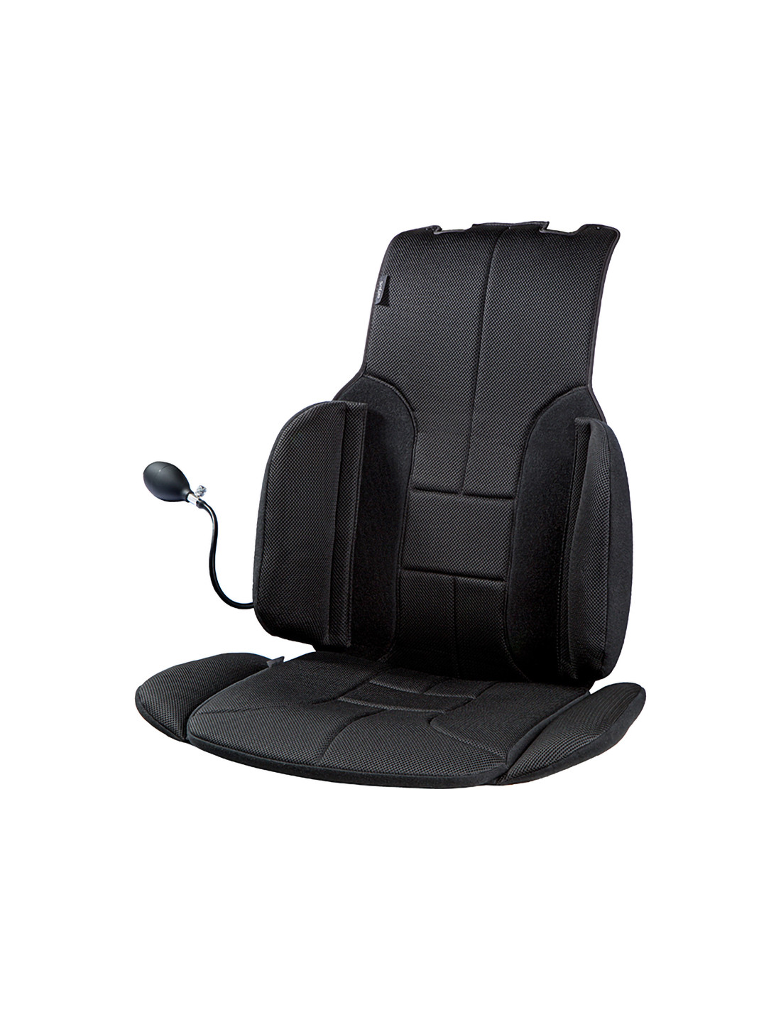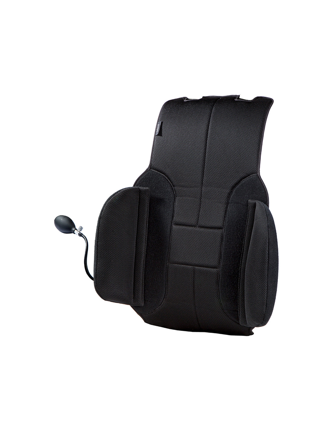 Coussin lombaire : tissu agrippant (polyamide), polyuréthane, latex et pvc (poire), microbilles PSE